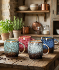 Queste tazze da caffè vintage fatte a mano conferiscono un fascino rustico unico alla tua routine del caffè. Realizzate in ceramica di alta qualità, queste tazze presentano un motivo simile al marmo con colori vivaci. La combinazione di un corpo in ceramica smaltata colorata e un manico comodo aggiunge un tocco senza tempo a qualsiasi cucina.