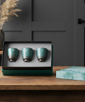 エレガントでヴィンテージなブルーオーシャントーン。エスプレッソ/コルタドカップ3個セットは、コーヒー愛好家への最高の贈り物です。(もちろん、ご自身へのご褒美にも。)